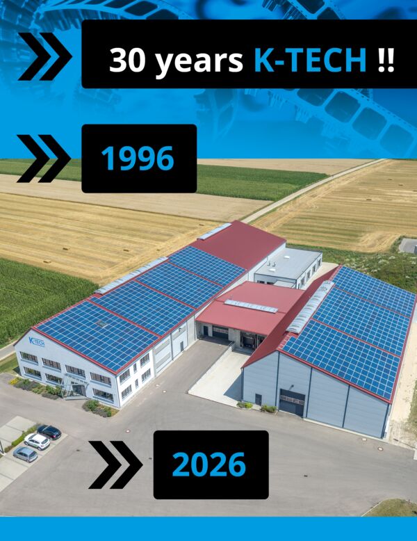 For three decades, K-TECH Electronic Vertriebs GmbH in Nördlingen has stood for competence, reliability, and continuous development in the field of Tape & Reel. With a great deal of commitment, expertise, and the courage to break new ground, the company has gradually developed into a valued partner for customers and suppliers. From its modest beginnings in a private home to its modern new building, this journey stands for growth, consistency, and innovative strength. With now 50 employees and its own carrier tape production with 14 machines at the headquarter in Nördlingen, K-TECH today stands for the highest quality and is ideally positioned for the future.